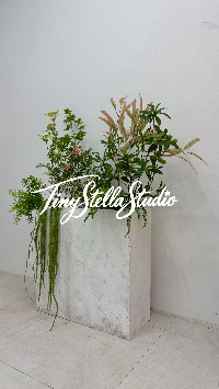 1. 베이스가 되는 '플랜트 박스' 준비 가장 먼저 공간의 크기에 맞춘 화분 박스를 준비합니다. 이번 작업에서는 빈티지한 질감이 살아있는 화이트 톤의 대형 박스를 사용했어요. 어떤 공간에도 잘 어우러지는 깔끔한 베이스입니다.